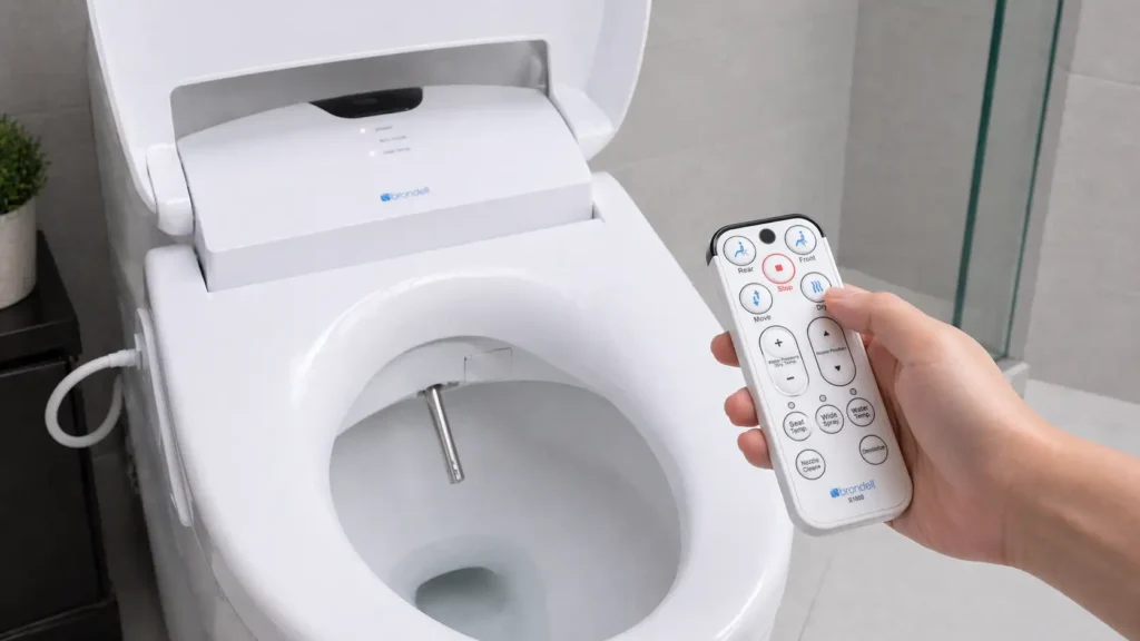 Here’s something Brondell doesn’t advertise prominently: press the wash button and nothing happens for about 10–15 seconds. That’s the sterilization cycle running before the nozzle extends. The first time it happened, I genuinely thought the remote wasn’t working. Once I understood why, it stopped being annoying — but it’s worth knowing upfront so you don’t spend your first session frantically pressing buttons. The payoff is worth it: knowing the nozzle auto-sterilizes before and after every use is the kind of hygiene detail that’s easy to appreciate once you’re aware of it.